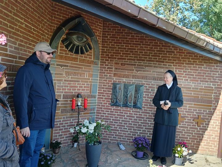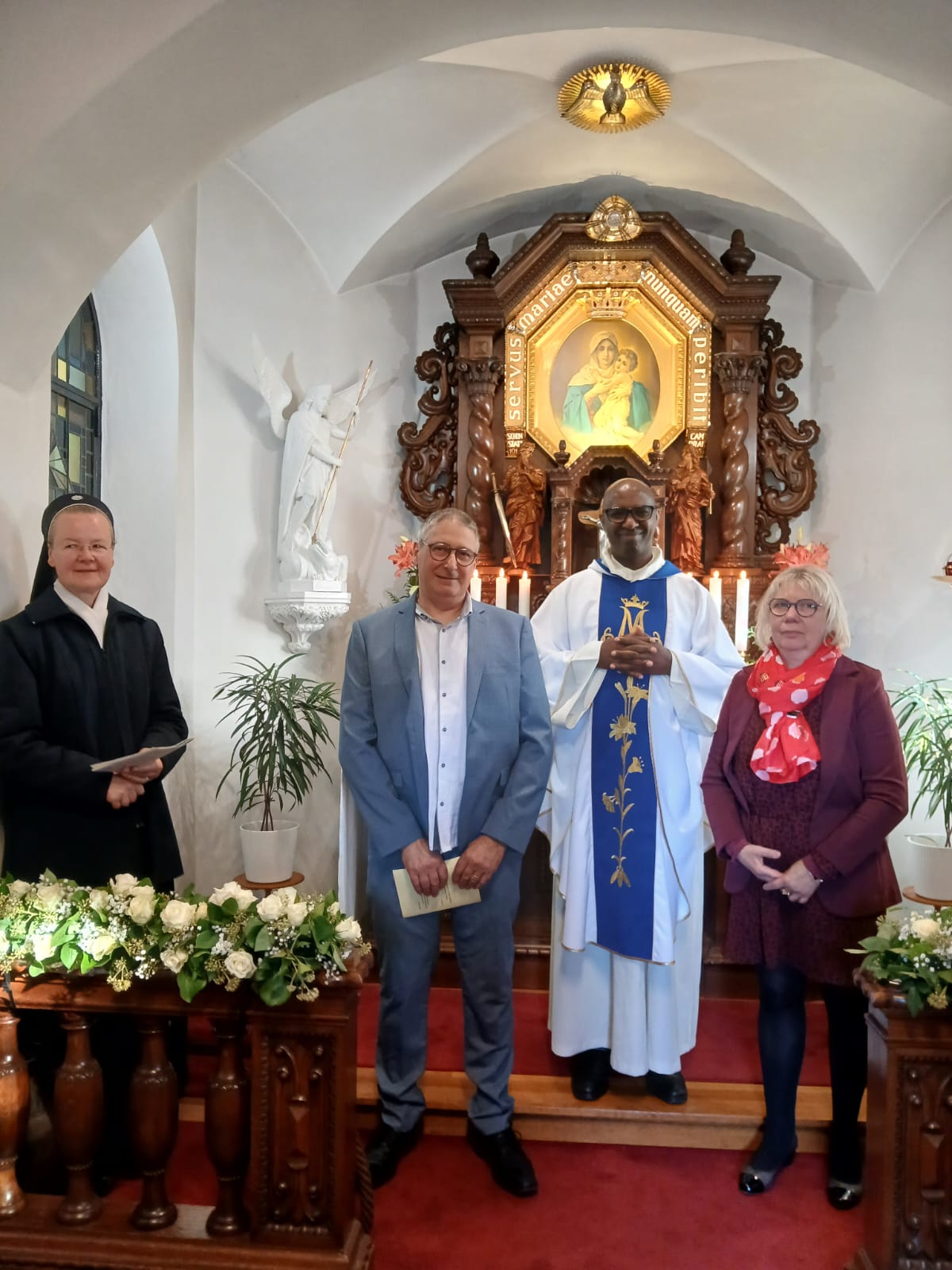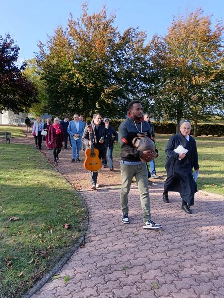 A l'invitation de Soeur Résia et de Soeur Luisa, samedi 4 octobre 2025, un groupe de personnes a emprunté le chemin de Joseph Engling, au départ d'Eswars. Au même moment, un chapelet était proposé au sanctuaire et une très belle messe a été célébrée par l'abbé Sébastien, entouré de fidèles et de plusieurs frères de Marie venus en pèlerinage depuis le Burundi, le Paraguay et le Chili.