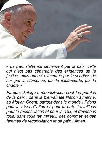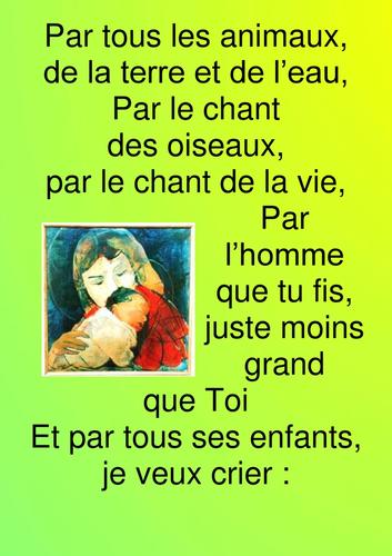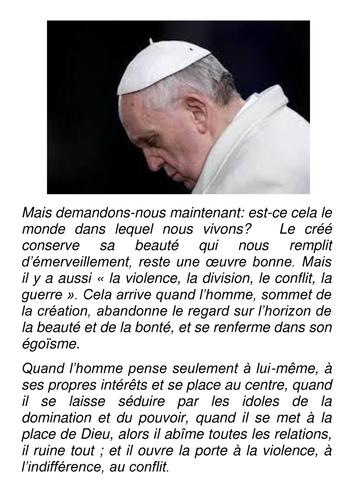 " Seigneur que dans le coeur des hommes, il y ait moins de méchanceté et de violence."