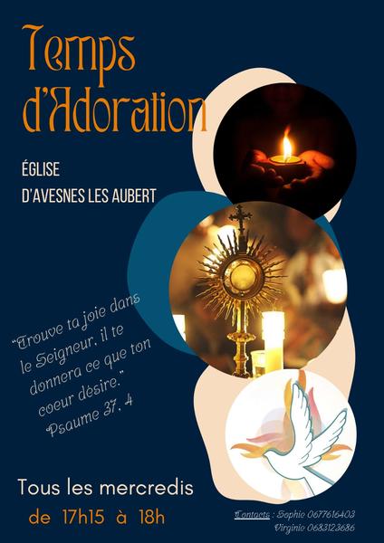 Une veillée d'adoration vous est proposée chaque mercredi, de 17h15 à 18h00, en l'Eglise Saint Rémi d'Avesnes Les Aubert.