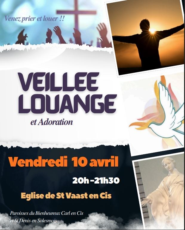 Les Paroisses du Bienheureux Carl en Cambrésis et de Saint Denis en Solesmois vous invitent à une veillée de louange et d'adoration